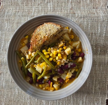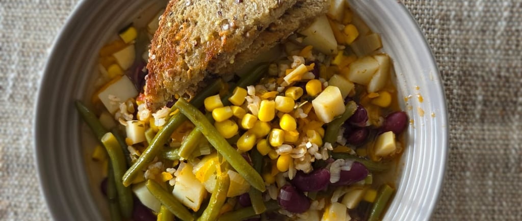 Servir chaud, garnir de persil frais. Un vrai bol réconfortant et coloré ! 🌽🥔🫘🥬