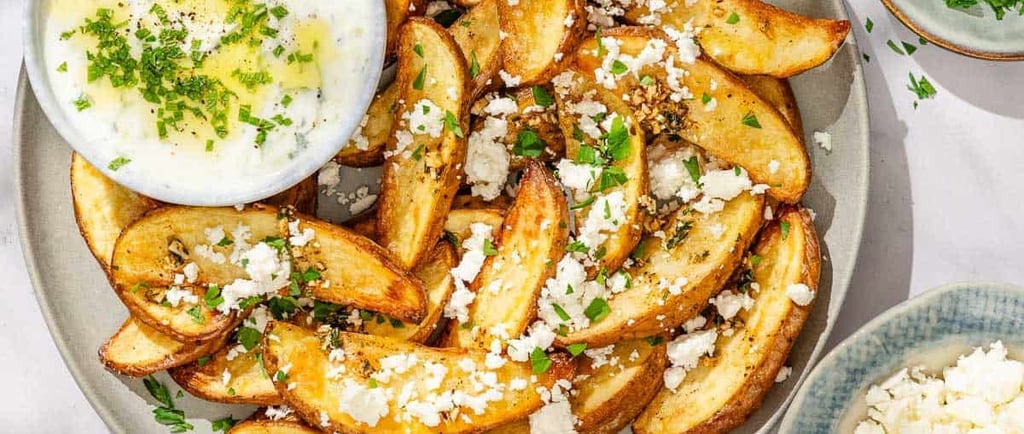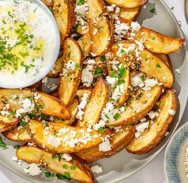 These thick, crispy Cabera Organic Belgian Potato Wedges Skin-On become the perfect edible plate for the brightest, freshest Mediterranean flavours. Think Greek salad meets perfectly crispy oven-baked wedges — light, satisfying, super colourful and very hard to stop eating!